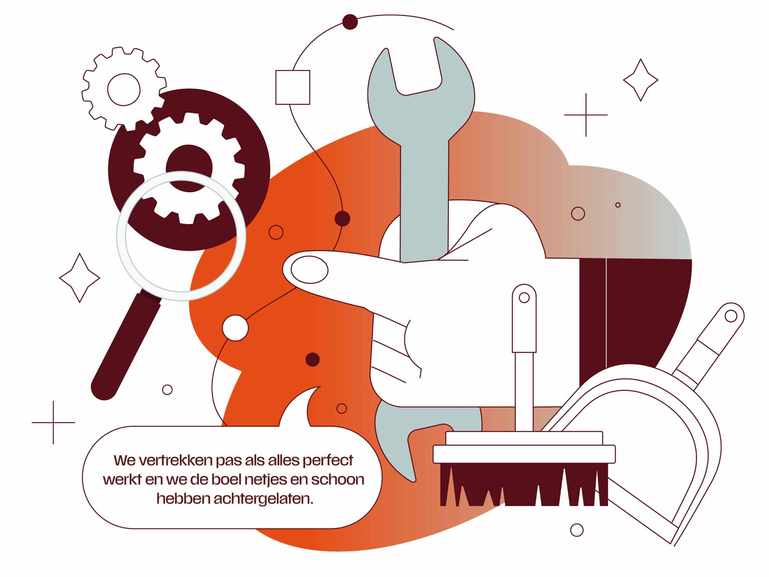 "We vertrekken pas als alles perfect werkt en we de boel netjes en schoon hebben achtergelaten."